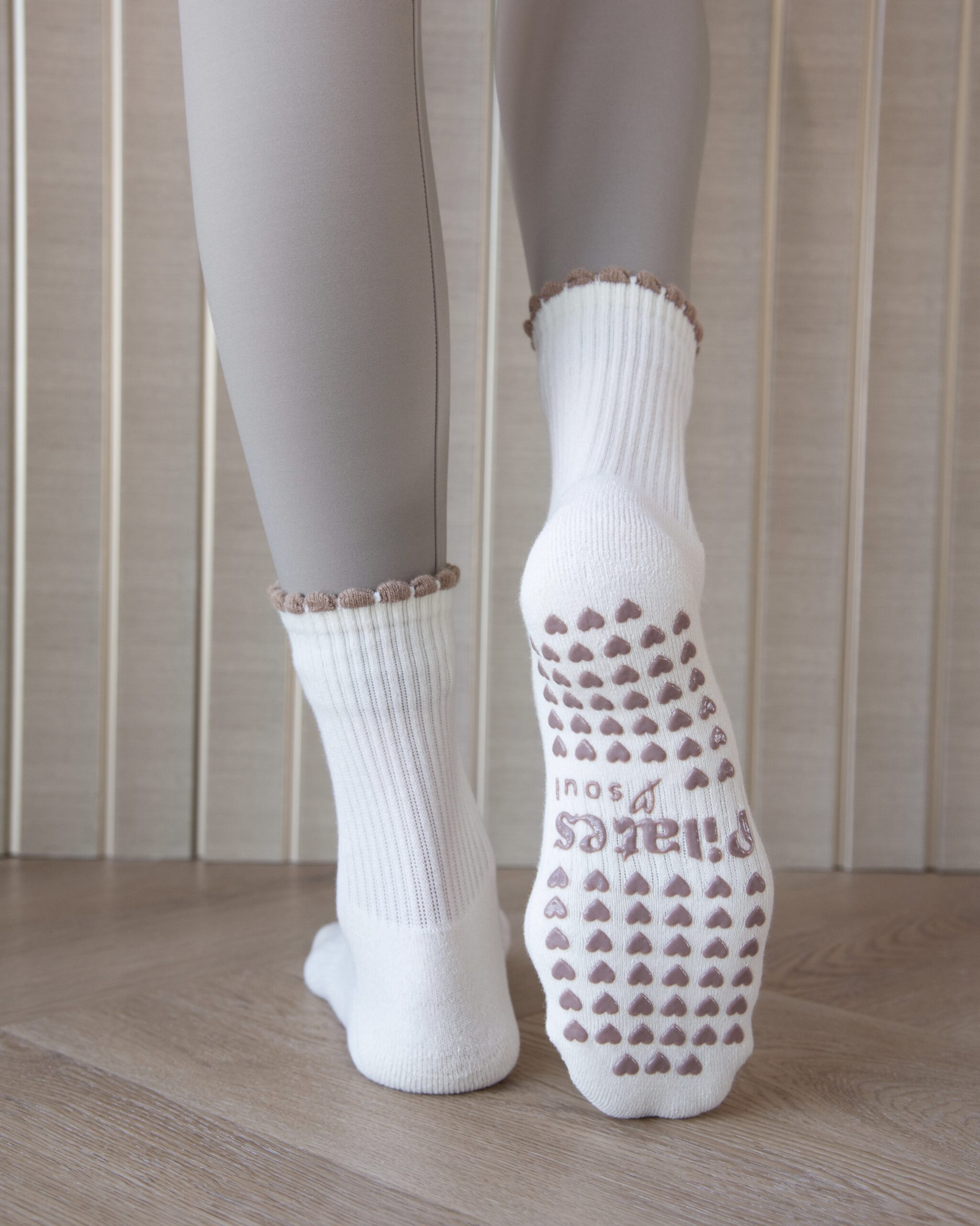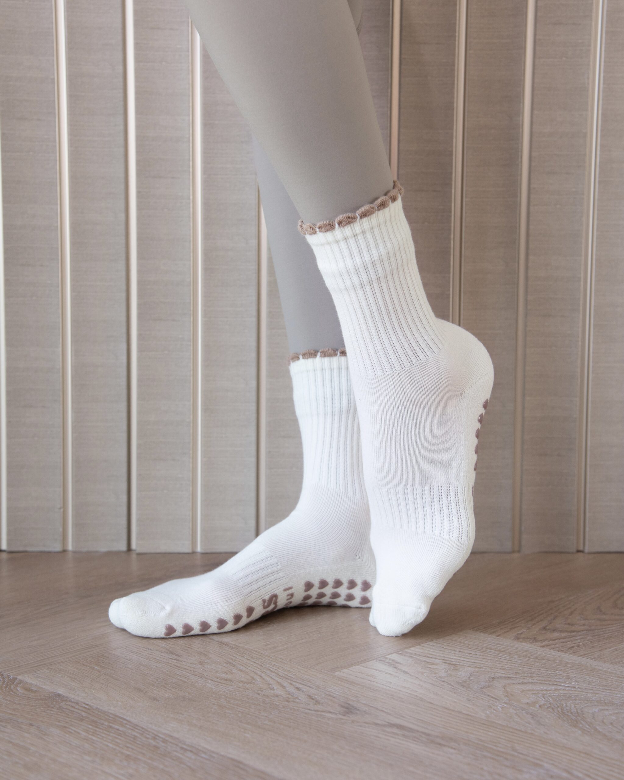 Sportzoknijaink csúszásmentes talppal rendelkeznek, amely kiváló tapadást biztosít szőnyegen, matracon vagy reformer gépen. A puha és rugalmas anyag alkalmazkodik a lábad formájához, stabilitást és párnázottságot biztosít, hogy segítsen fenntartani a tökéletes egyensúlyt mozgás közben.